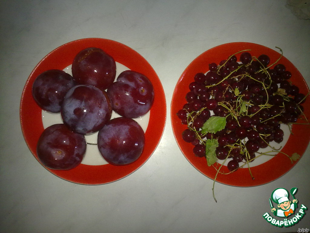 У слив отделите мякоть от косточек и порежьте на ломтики. Если кожица жесткая, ее тоже желательно удалить. Ягоды смородины отделите от черешков.