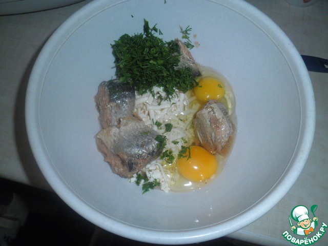Все размять вилкой, поперчить. Не солить! Рыба и сырки уже соленые.