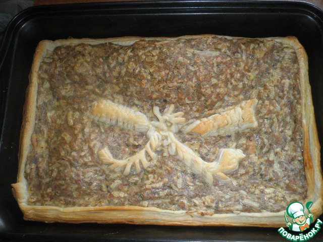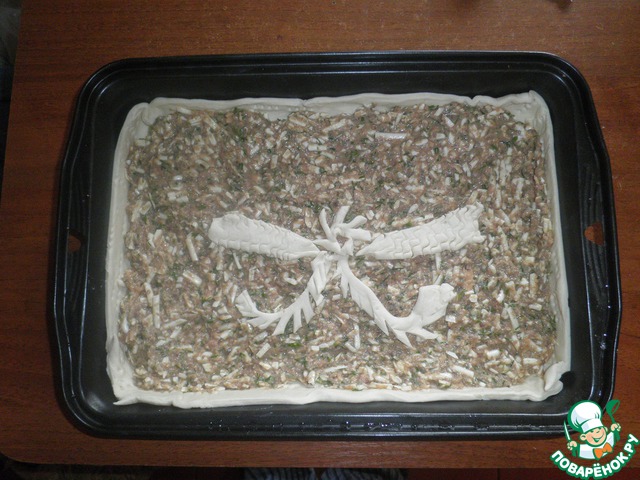 Выложить начинку и в духовку - до готовности (пока тесто не станет румяным).