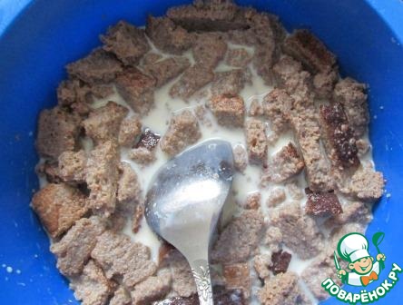 Налить в миску молоко и накрошить туда черный хлеб.