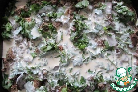 Приготовить заливку: смешать сметану и 2 яйца, чуть присолить по вкусу.