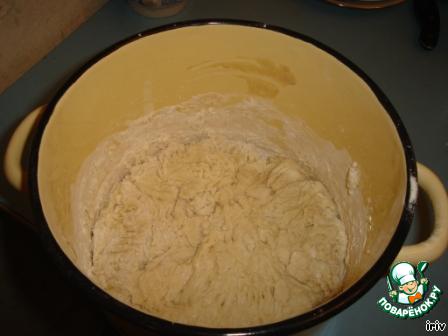 В теплой воде растворить дрожжи и 1.5 ст. ложки сахарного песка. Когда дрожжи поднимутся, начинаем готовить тесто.