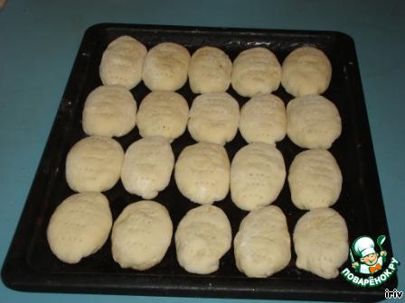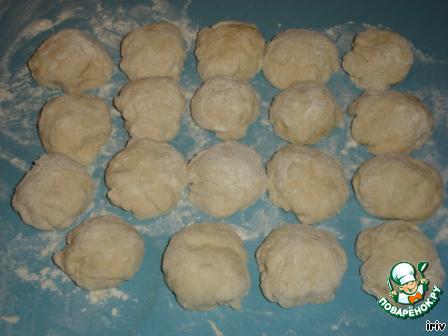 Из теста формируем колбаску, режим ее на кусочки.