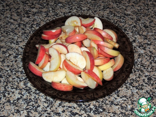 Для начинки яблоки очистить от семенной коробочки, нарезать дольками (наибольшая толщина 0,5-0,7 см).