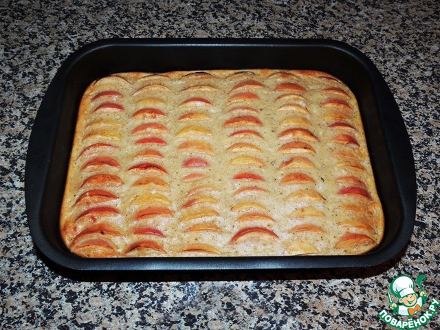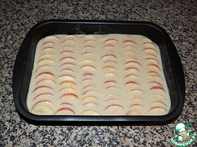 Тесто распределить в смазанной маслом форме (можно подложить пергамент). Размер моей формы 30х22 см.