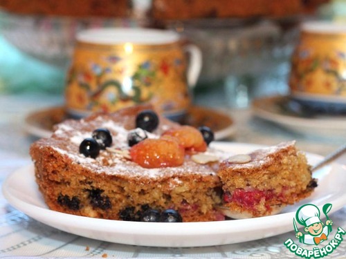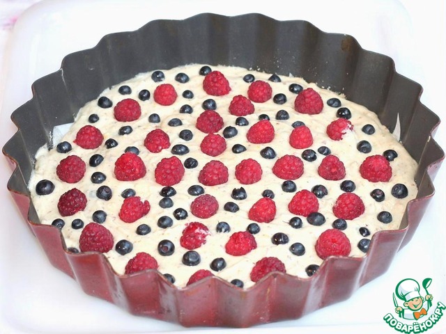Миндальный пирог с малиной и черникой