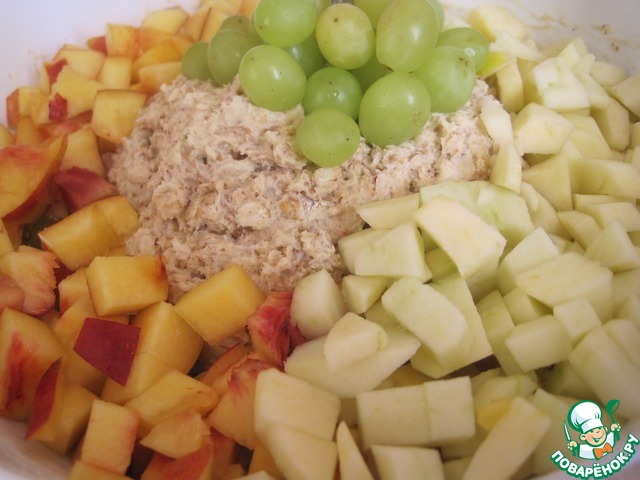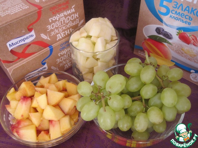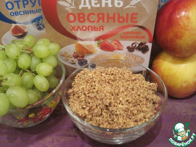 | Раннее утро...6.00.. Воскресенье... Осень.. Семья спит... Интересно, почему мне не спится? Ну что ж, приготовлю-ка я фруктово-овсяный пирог на завтрак, да такой, что б муж и дочка, ощущая сквозь сон ароматы, сказали "ВАУ!!!" Всё, что нужно для пирога на кухне есть-овсяные хлопья Мистраль, фрукты и даже миндальная мука, заготовленная предусмотрительно впрок... Пирог сделала по мотивам пирога "Фруктовый Микс" от хозяйки кулинарного блога Нины Тарасовой (Niksya) |