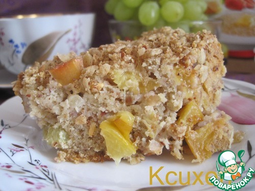 Сверху обильно посыпаем овсяно-миндальной ароматной крошкой и ставим пирог в духовку примерно на 1 час или до сухой зубочистки. Из данного количества продуктов у меня получилось два пирога-один выпекался в разъёмной форме ( 26 см диаметр) и в прямоугольной силиконовой форме для кекса. За время выпечки пирог почти не поднялся, но всё же форму тестом не нужно заполнять до краёв. Достаточно 2/3 от объёма формы, что б пирог хорошо пропёкся.