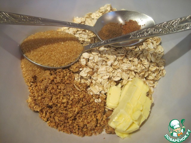 Приготовим ароматную посыпку-смешаем ингредиенты и руками перетрём до состояния крошки.