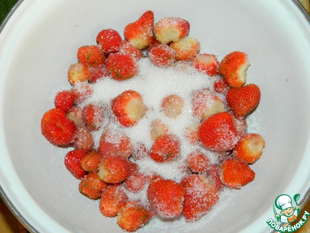 Смешать клубнику с сахаром. Довести до кипения проварить пару минут.