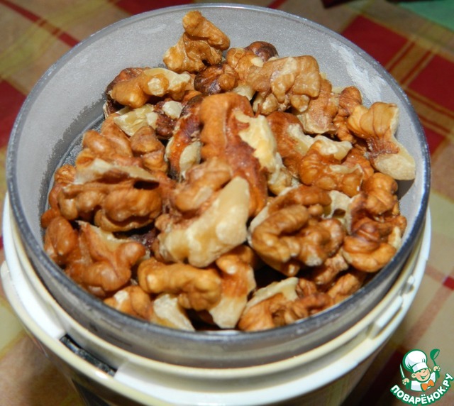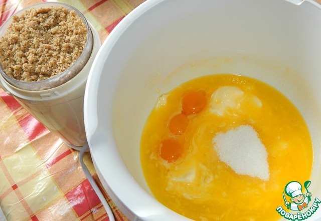 Соединяем масло с желтками, сахаром, корицей. Добавляем размолотые орехи.