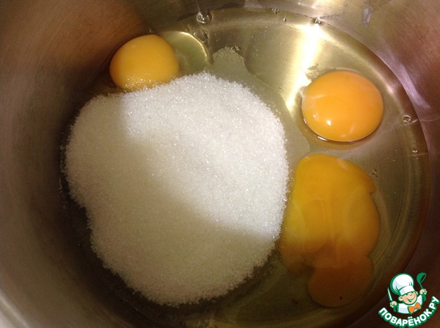Маргарин ставим растапливать. Взбиваем яйца, с сахаром