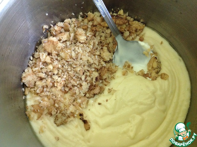 В другую часть теста добавляем толченый орех, и перемешиваем. Я прокатала его скалкой, не надо его мельчить