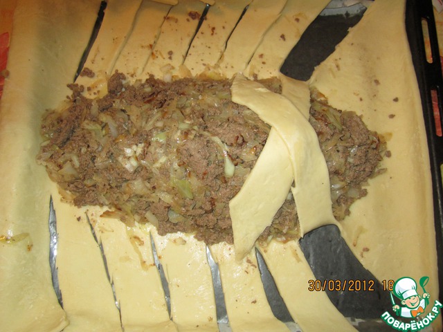 | Мои мужчины не могут жить без печёного. Решила сделать мясной пирог и удивить их его оформлением. Идею увидела в каком-то из кулинарных журналов. Очень оригинально. И вот решила попробовать тоже. Пирог получился очень вкусный, ароматный и сытный. |