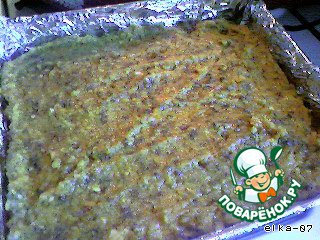 Форму (20 на 30 см) выстелить фольгой, смазать растительным маслом и выложить тесто. Распределить равномерно по всей форме и поставить выпекать в разогретую до 200 градусов духовку на 25 минут.