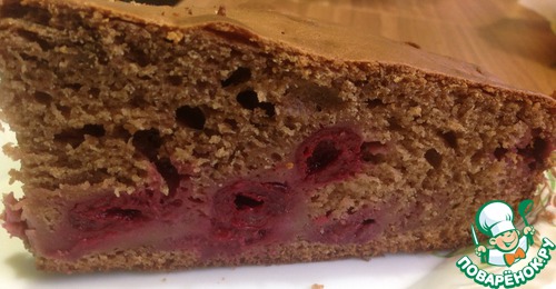 | Сочный, вкусный пирог с вишней. Тонкий шоколадный аромат с вишневой кислинкой. Легко и быстро готовится из минимума продуктов. Хорош как на праздничный стол, так и на повседневный. Пирог без заморок. |