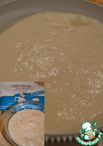Молоко нагреть до 36-38 С. В половину стакана с теплым молоком добавить дрожжи и дать постоять 10 минут, соединить с остальным молоком, добавить половину взятой муки. Вымесить чтобы небыло комков. Накрыть, и поставить в теплое место для увеличения.