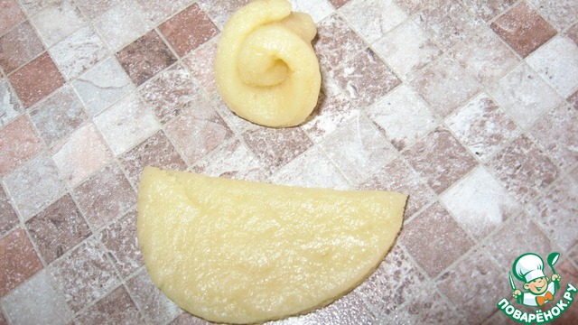 Разрезаем каждый кружочек на 2 части и скручиваем вот такие "фунтики"