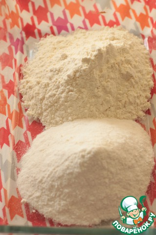 Соединим пшеничную и рисовую муку.