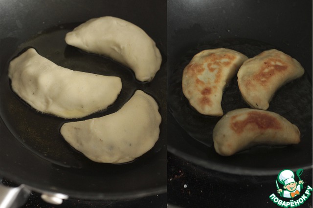В сковороде или воке разогрейте оливковое масло, выкладывайте пироги и обжаривайте с обеих сторон до образования золотистой корочки.