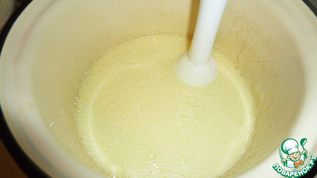 Яйца и сахар взбиваем блендером. Желательно до растворения сахара.