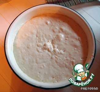 В опару добавить муку, так, чтобы получилось негустое тесто.