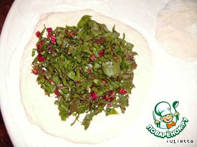 мелко нарезать вместе с черенками. Начинки по объему должно быть столько же, сколько и теста.