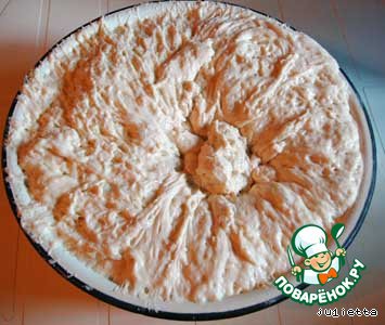 Пирог уложить на смазанный противень защипом вниз. Аккуратно расплющить, несильно прижимая ладонями.