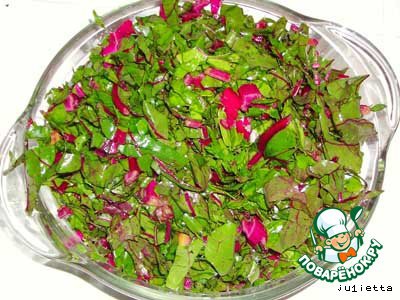 Тем временем приготовить начинку: свекольные листья хорошо промыть, обсушить полотенцем,