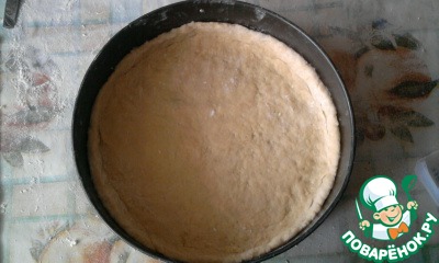 Тесто разделить на две части: одна часть (больше) непосредственно основа пирога, на которую будем выкладывать начинку. А вторая часть (меньше) - для украшения.