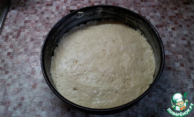 И разравниваем его сначала мокрыми руками, а затем смоченной в воде ложкой и отправляем в предварительно нагретую до 180 градусов духовку на 30-35 мин