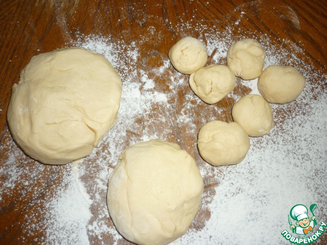Разделить тесто на 3 части. Одну побольше, две поменьше. Из маленькой части скатать шарики и положить на 20 минут в морозильную камеру.
