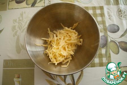 Приготовим тесто. 120 г холодного масла натираем на крупной терке