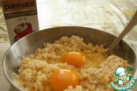 Готовим начинку. Растапливаем в кастрюле 50 г сливочного масла, добавляем семена ванили и рис. Помешивая, готовим около 5 минут. Затем вливаем вино и готовим, пока оно не выпарится. Потом вливаем сливки, добавляем цедру и сахар и варим около 15 минут.