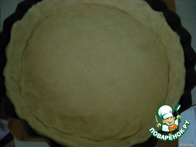 От теста немного отделить на украшение, остальную часть раскатать и выложить в смазанную форму.