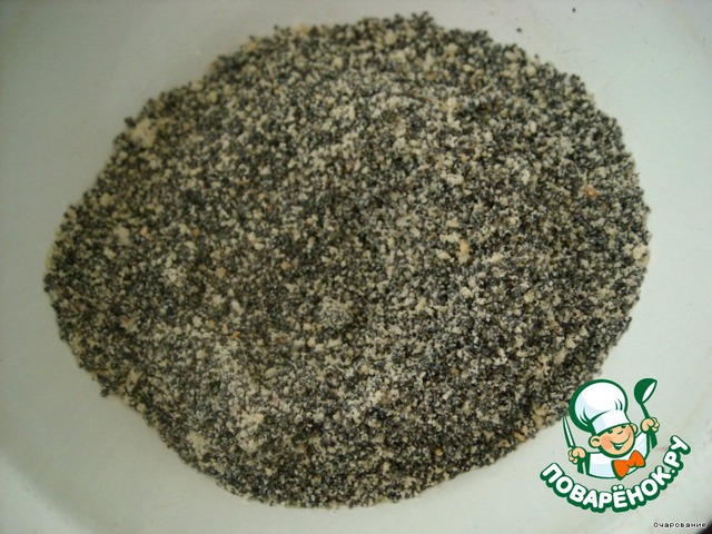 Мак распарить, и вместе с орехами перемолоть в крошку.