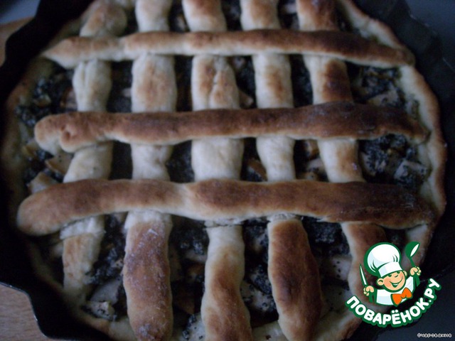 И остальную часть теста раскатать и выложить в виде решетки на начинку.