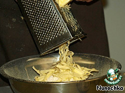 Холодное масло нарезать маленькими кусочками или измельчить на терке, выложить в миску, добавить просеянную муку, соль, сахар и соду.