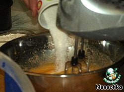 Взбить до однородной консистенции яйца с сахаром и ванилином.
