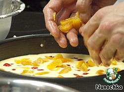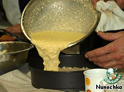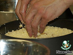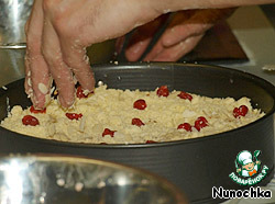 Всыпать в форму, выстеленную пергаментом, 2/3 теста.