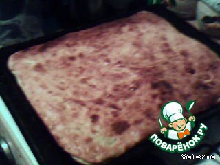 взять вторую половину теста (она должна лежать в кастрюле, под полотенцем (иначе обветрится), добавить муки, раскатать 1,5см, и уложить свеху начинки, края аккуратно защипать, пирог смазать яйцом с сахаром ((1/2 чайной ложки на 1яйцо), поставить в духовку на 20-25 минут.