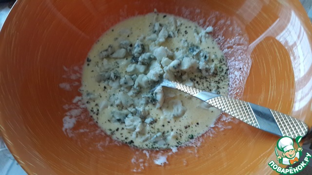 Яйца смешать со сметаной и покрошить в смесь сыр с плесенью. При желании поперчить.