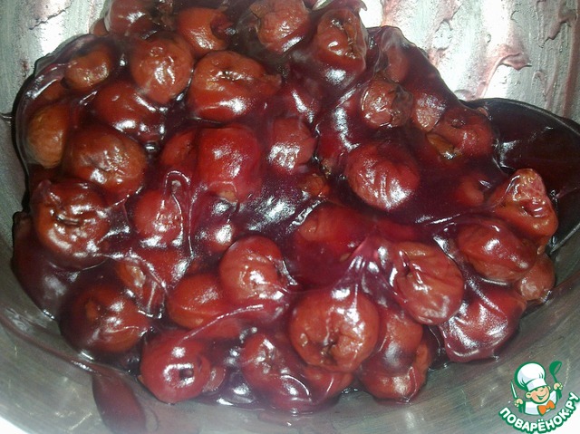 Крахмал разводим с водой и добавляем в вишню. Постоянно размешивая, доводим ягоды до полного загустения.