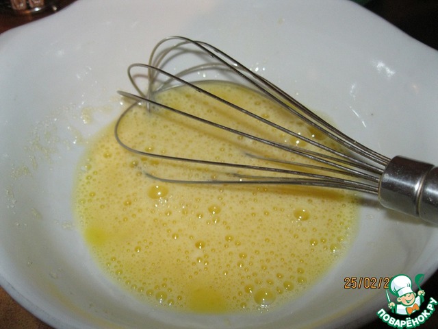 Яйца слегка взбить венчиком со щепоткой соли (люблю, когда соль присутствует в сладкой выпечке, она подчеркивает что-ли сладость блюда. Вот и батончик "Сникерс" имеет эту сладко-соленую пикантность)