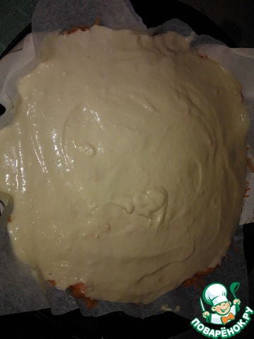 Теперь тестом заливаем тыкву, пожеланию можно не заливать, а часть тыквы перемешать с заливкой-тестом... но нижний слой все равно лучше оставить только из тыквы, так остается очень сочный нижний слой. Ставим в разогретую духовку на 30-35 минут.