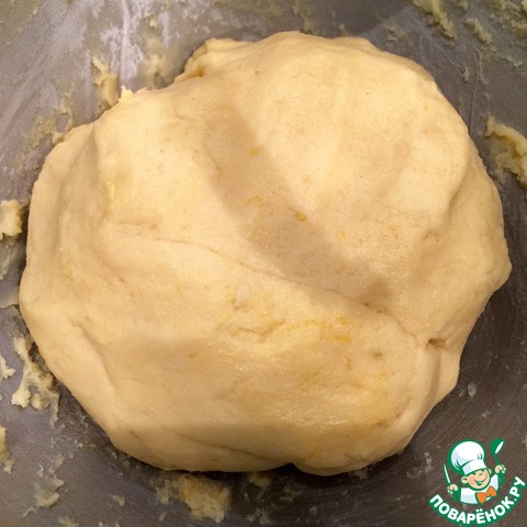 Как только тесто собралось в ком-выключаем. Оборачиваем его пленкой и ставим в холодильник на 2 часа, а лучше на ночь.