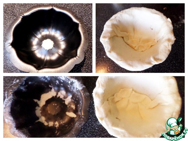 4. Тесто раскатаем, нарежем пластинками, выложим в формочки, стараясь сделать донышко чуть толще, чем стенки.