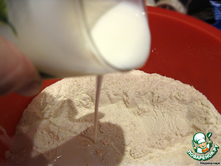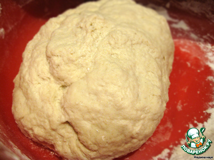 Теперь замешиваем тесто, слегка липкое, накрываем полотенцем и оставляем на 10-15 минут.