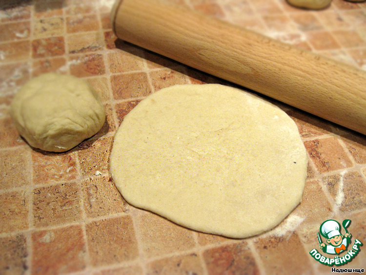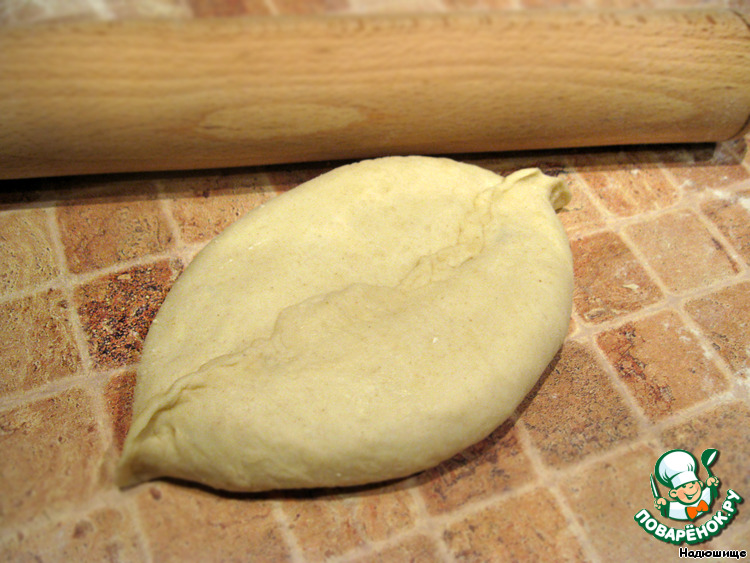 а затем раскатываем тесто вместе с начинкой в плоскую лепешку.