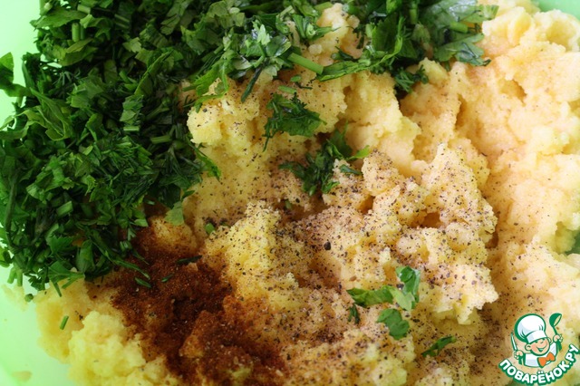 Влить молоко и растительное масло, добавить соль и паприку по вкусу